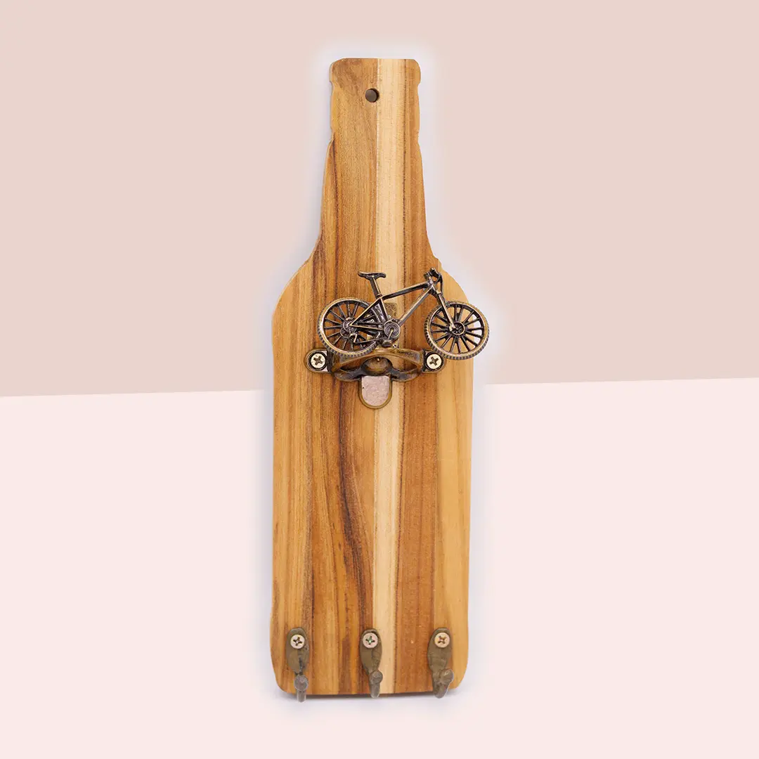 Canetas, chaveiros, garrafas e peças em madeira